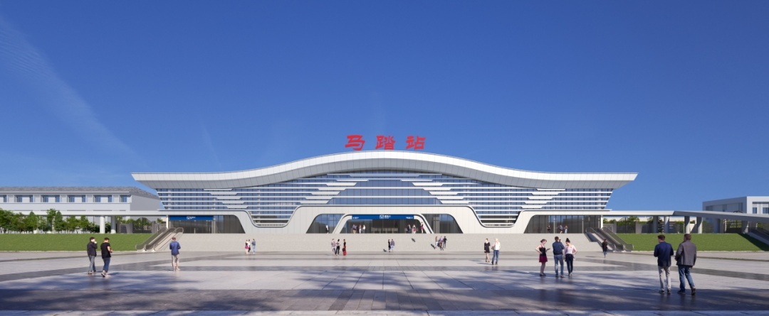 马踏站位于茂名市电白区马踏镇。站房设计以马踏镇传说“因仙人曾策马于此,在巨石上留下足迹而得名”为构思,向前冲出的屋顶结合立面动感的线条,模拟仙马腾飞的态势。