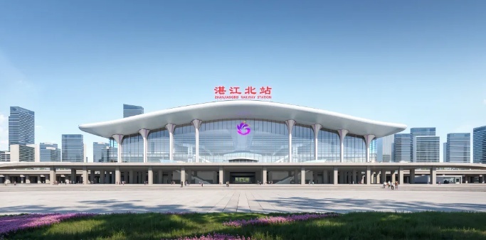 湛江北站位于湛江中心城区的地理中心,可与各城区紧密联系。设计取意“紫荆绽放”,紫荆花作为湛江市的市花,在城市中的街道公园随处可见,似彩蝶翩翩随风飞舞着的紫荆花活力四射,象征着湛江市的繁荣昌盛。